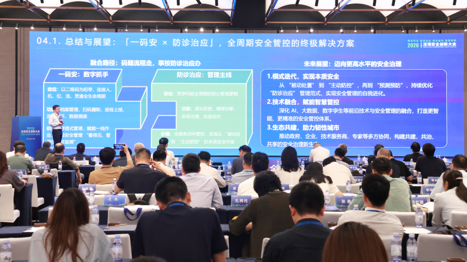 深圳市前海公共安全科学研究院执行院长王志刚系统分享《“防诊治应”理论体系与实践应用》,以防、诊、治、应四道防线为核心,构建全周期、全链条安全治理新模式,破解传统隐患排查末端治理困局,推动安全从约束向赋能转变,并依托数字孪生、一码安等技术落地实践,为韧性城市建设与高质量发展提供坚实支撑。