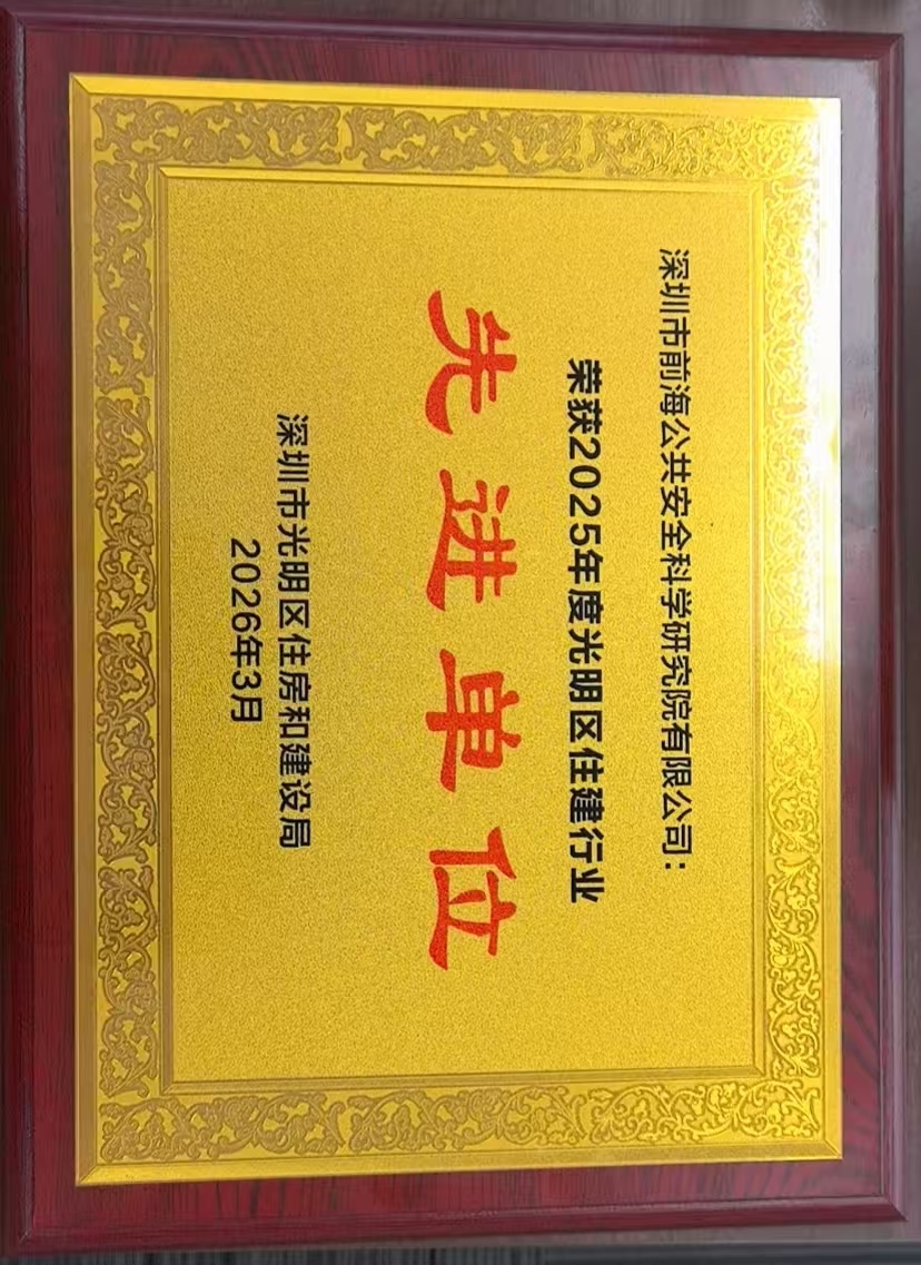 捷报传佳音,荣光映初心!深圳市前海公共安全科学研究院有限公司,作为住建领域公共安全科技赋能专业服务商,凭借在光明区住建领域的专业技术深耕、全链条安全管控能力、硬核实战实绩,荣获2025年度光明区住建行业先进单位荣誉称号。这份殊荣,是光明区住房和建设局对我院专业服务能力的高度认可,更是对我院核心发展理念落地成效的最佳印证,凝聚着全体团队的坚守与实干。